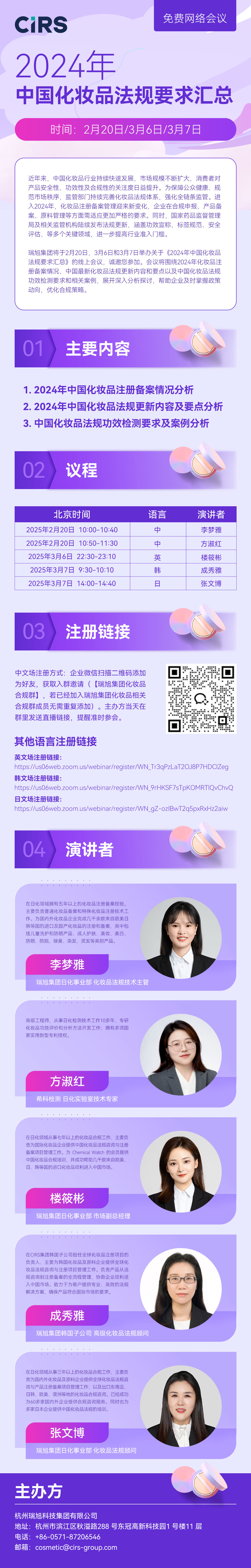 中文场注册方式:企业微信扫描以下二维码添加为好友,获取入群邀请(【瑞旭集团化妆品合规群】,若已经加入瑞旭集团化妆品相关合规群成员无需重复添加)。主办方当天在群里发送直播链接,提醒准时参会。