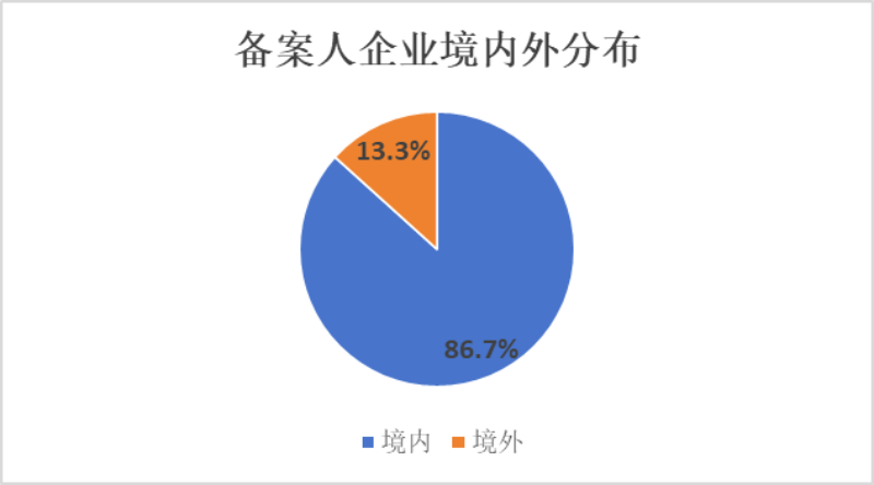如下图1所示,2025年11月取得备案号的15款化妆品新原料备案人中,13款新原料的备案人位于境内地区,占比约86.7%;2款新原料备案人位于境外地区,占比约13.3%;境内备案人数量远超境外备案人数量。
