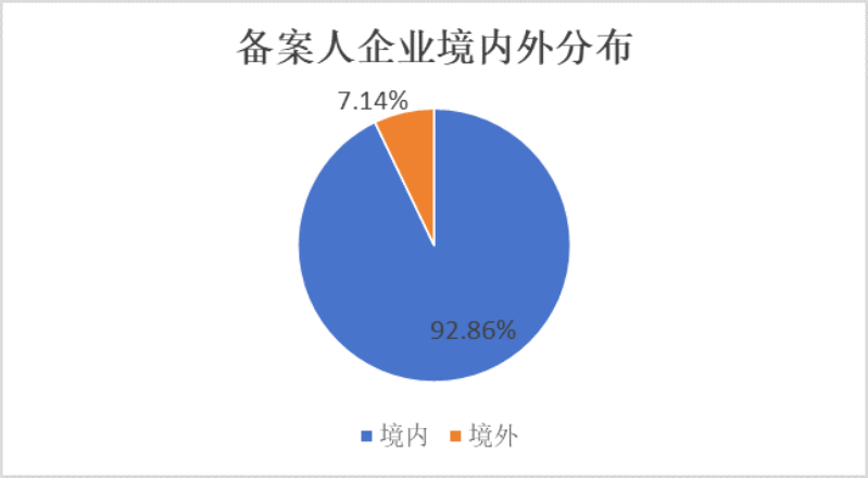 如下图1所示,2025年8月取得备案号的14款化妆品新原料中,13款新原料的备案人位于境内地区,占比约92.86%;1款新原料备案人位于境外地区,占比约7.14%;境内备案人数量远超境外备案人数量。