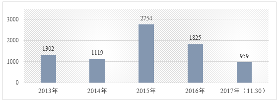 2015年和2016年国产非特殊用途化妆品备案量共计为217254件和202803件。而2017年,截止至11月30日,国非特备案总量已达272223件。由于《化妆品生产许可证》“两证合一”的实施,2016年国产企业均处于换证转型过渡期,产品备案注册量有所影响。