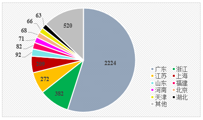 各省份国产产品备案注册量很大程度上取决于当地的生产企业和品牌方的数量。自化妆品生产许可“两证合一”正式施行后,大部分生产企业一定程度上都进行了生产修正。2017年1月1日起,统一启用《化妆品生产许可证》。化妆品生产企业持有的原《全国工业产品生产许可证》和《化妆品生产企业卫生许可证》自动作废。截止目前,获准企业共计4049家,广东省有2224家,约占55%。浙江、江苏和上海的获证企业也均超过200家。