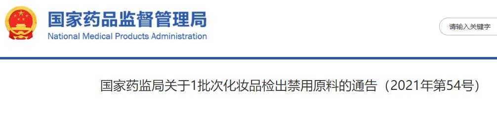 国家药监局发布关于1批次化妆品检出禁用原料的通告(2021年第54号)