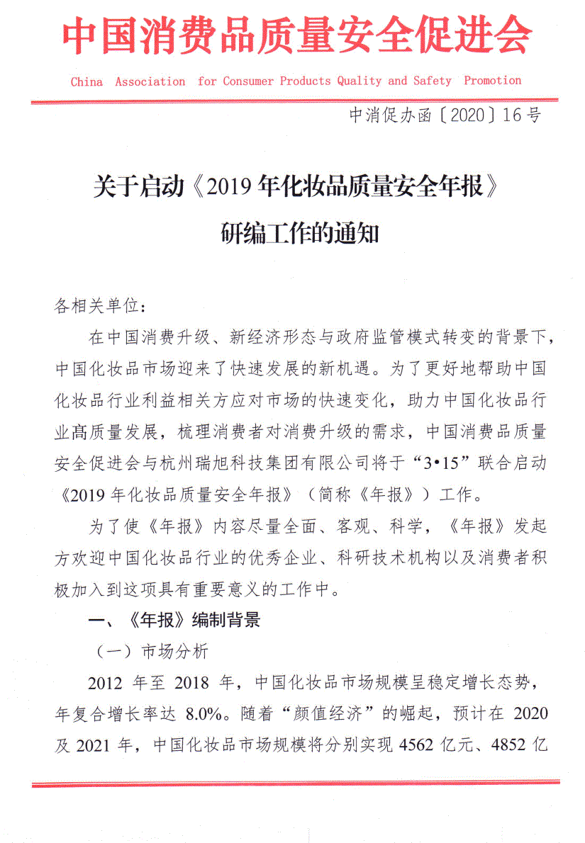关于启动《2019年化妆品质量安全年报》研编工作的通知
