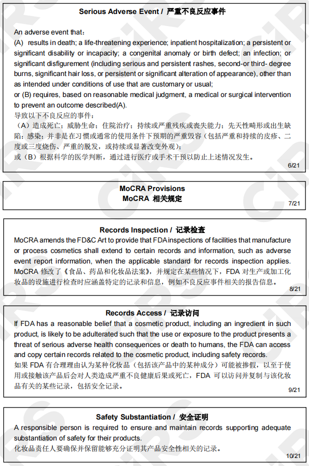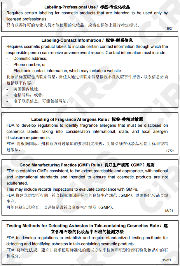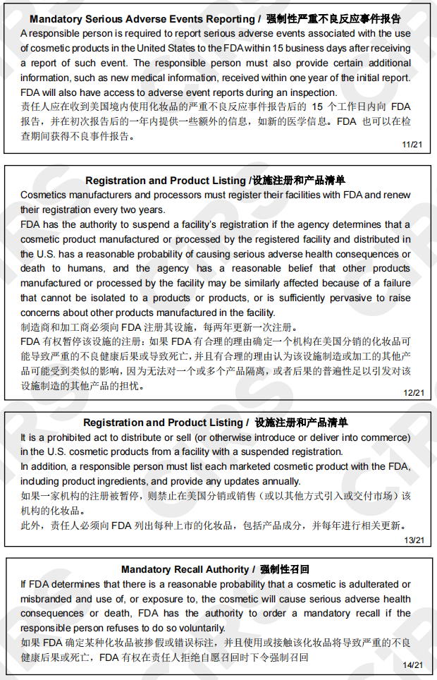 美国FDA于2023年4月举办了“2022化妆品法规现代化法案-关键术语和规定”的网络研讨会,概述了该法案规定的要求以及FDA正在采取的实施这些要求的当前步骤,包括对自愿化妆品报告计划的更新,以及关于良好生产规范(GMP)的公开听证会的信息。