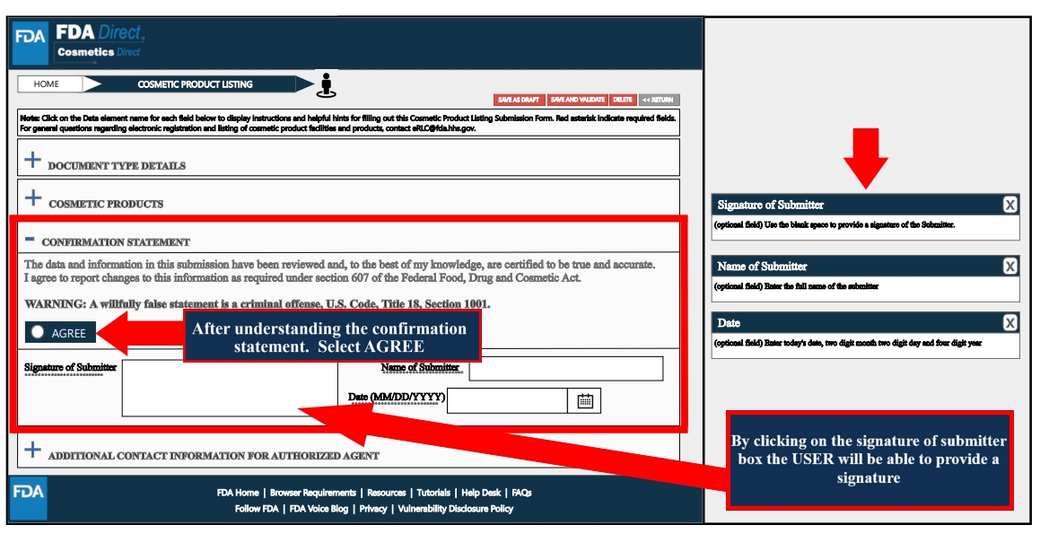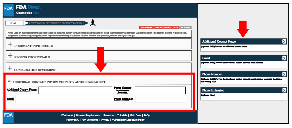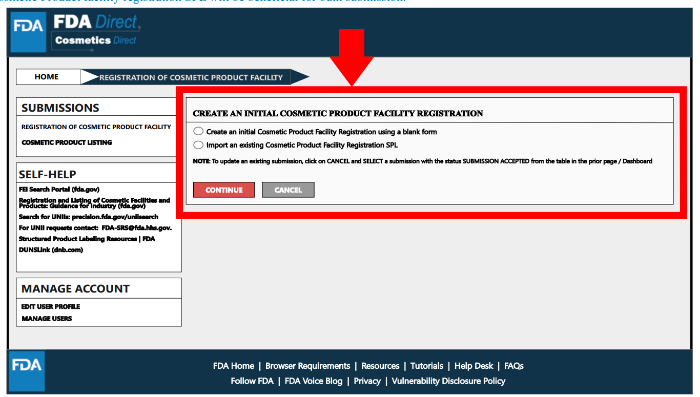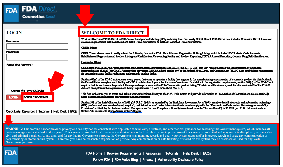 名称被定为Cosmetics Direct,与药品注册平台CDER Direct同属于FDA Direct。页面展示如下: