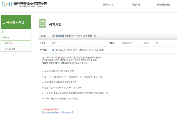 在确保化妆品安全和加强企业责任的全球趋势下,为了培养化妆品安全评估专业人才,使其依照各个国家的化妆品安全管理标准出口化妆品,大韩化妆品产业研究院(KCII)将于2022年10月7日、10月14日、10月21日对相关化妆品企业进行为期三天的化妆品安全评估员培训,培训地址在韩国TOZ江南TOZ塔店(江南站附近)。