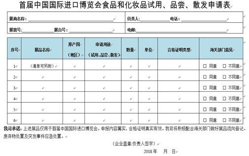 - 参展商对试用化妆品应事先以书面形式向上海海关申请(申请书见附件1)