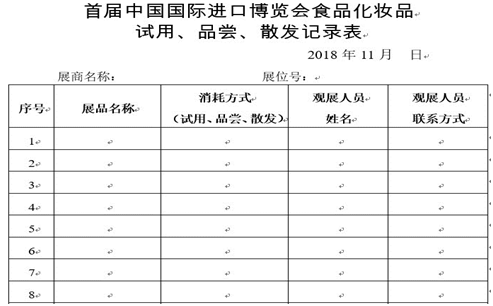 - 参展商应做好试用记录(记录表见附件2),确保相关产品紧急情况下可召回、可追溯。