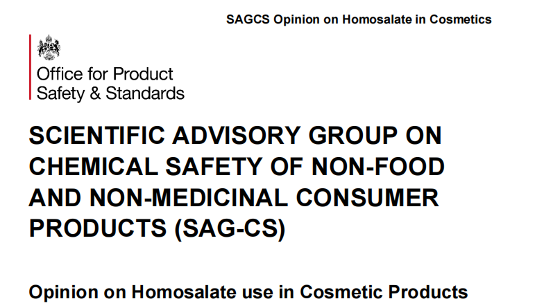 2025年5月,英国非食品与非医药消费产品化学安全科学咨询组(SAG-CS)发布了关于胡莫柳酯(Homosalate)的评估意见。