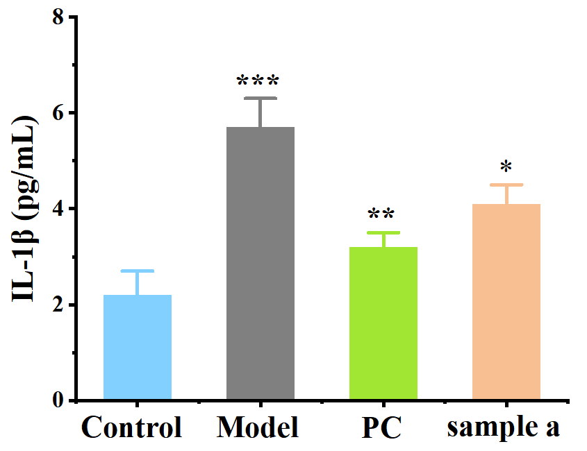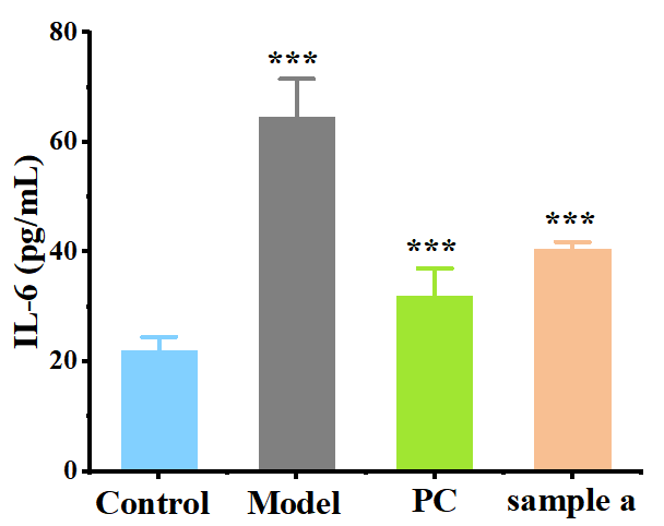 与模型组相比,加入样品后炎症因子含量明显下降,表明样品具有祛痘功效。