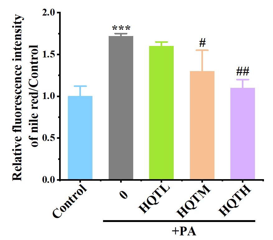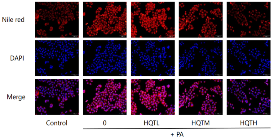 与模型组相比,样品组随着浓度升高,红色荧光强度逐渐减弱,表明样品能有效抑制皮脂腺细胞皮脂分泌,有一定的祛痘功效。