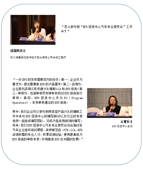 此次EPD促进中心汽车专委会的成立对中国汽车的合规管理有重大意义。该如何面对海外EPD的强制要求和EPD中国的发展前景对企业的要求,以及EPD中国和其他国家的互认都是各方关注的重点话题。专委会未来也将立足中国国情,目标为中国汽车行业及供应链企业的双碳管理工作及EPD业务开展,对接国际标准规范提供专业技术服务和综合解决方案。协助企业打造专业、高效、国际化的双碳运营管理体系,提升企业在可持续发展领域的合规能力,为企业的全球化发展保驾护航。