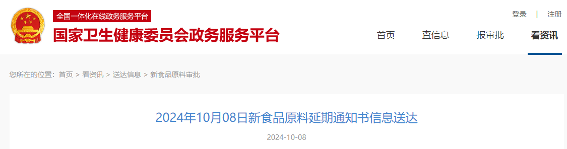 2024年10月7日至10月13日,国家卫生健康委员会政务服务平台发布“三新食品”审批情况,其中包括: