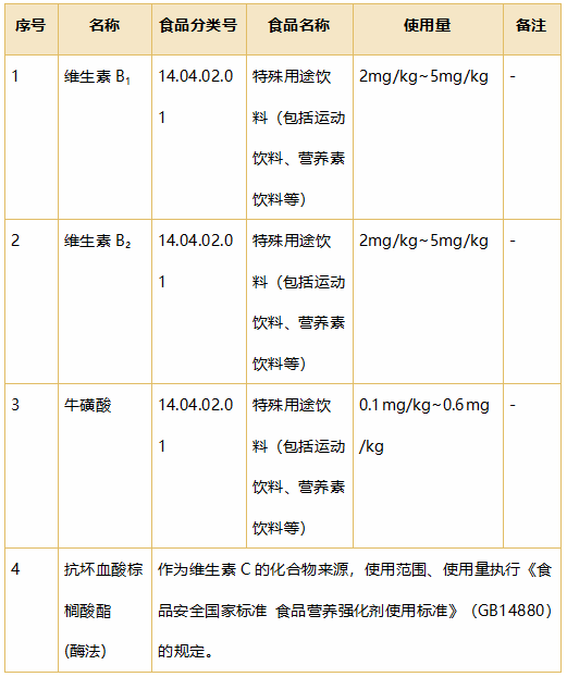 4. 扩大使用范围和用量的食品营养强化剂(4种)