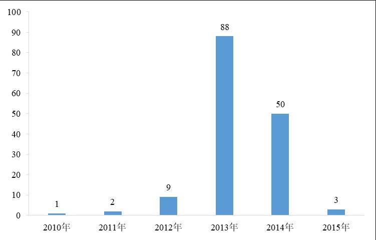 在获得新产品注册批件的153款保健食品受理时间覆盖2010-2015年,其中,2013年受理的产品获批数量最多,共有88款,占保健食品注册总量的57.52%;其次为2014年受理的产品,为50款,占保健食品注册总量的32.68%。总体来看,此前积压数年的产品正在陆续得以解决。