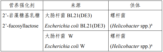 功能分类:食品营养强化剂2’-岩藻糖基乳糖的使用范围、使用量及质量规格要求按照国家卫生健康委员会 2023 年第8 号公告执行(附录C用于生产 2’-岩藻糖基乳糖的生产菌信息除外),该营养强化剂新品种的生产菌信息见下表。