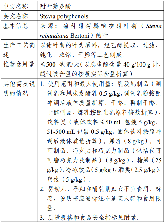 国家卫生健康委食品安全标准与监测评估司于2025年2月10日发布关于甜叶菊多酚等20种“三新食品”的公告,其中包括5种新食品原料,8种食品添加剂新品种和7种食品相关产品新品种。