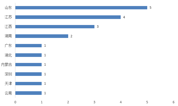 2026年1季度注册的20款特医食品共来自10个省份地域,其中山东、江苏和江西分别以5款、4款和3款的数量位列前三,占获批总数的60%。值得一提的是,云南、内蒙古在2026年1季度均获批了首张特医食品注册证书,实现了零的突破,表明其产业布局开始起步。具体省份地域及数据见下图5。