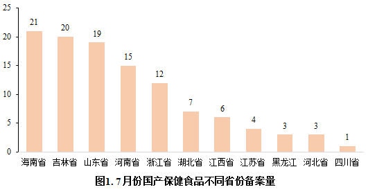 截至2018年7月31日,已备案国产保健食品数量达871款。其中7月份已备案国产保健食品数量为111款,具体数据如下: