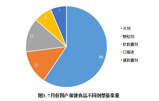 按剂型来看,获得备案凭证的国产保健食品中,片剂剂型最多,占7月获批总量的59.46%。