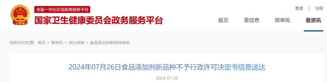 2024年7月1日至7月31日,国家卫生健康委员会政务服务平台发布“三新食品”审批情况,其中包括:
