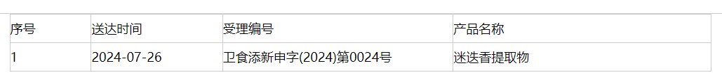 - 不予行政许可决定书信息送达4例(新食品原料新品种:吡咯并喹啉醌二钠盐、鼓槌石斛花、樱花提取物 食品添加剂新品种:迷迭香提取物)
