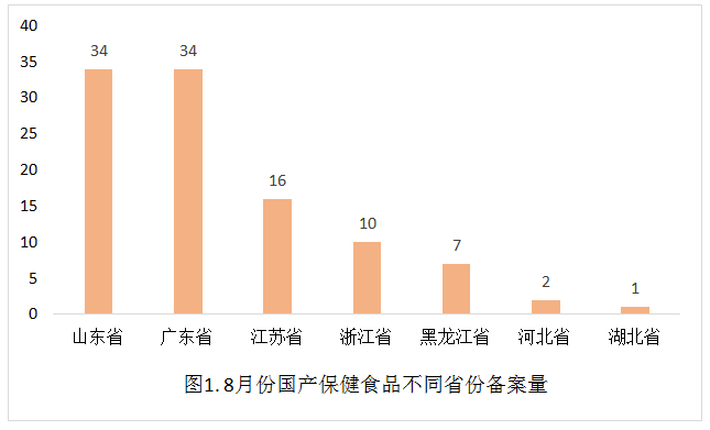 截至2018年8月31日,8月份已备案国产保健食品数量为104款,具体数据如下: