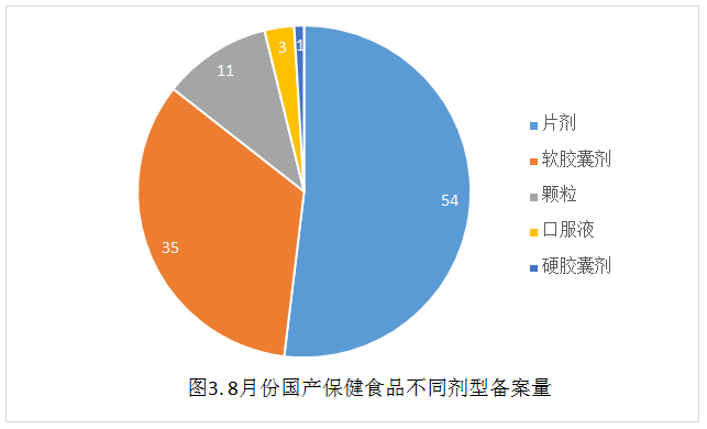 按剂型来看,获得备案凭证的国产保健食品中,片剂剂型最多,占8月获批总量的51.92%。