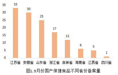 截至2018年9月30日,9月份已备案国产保健食品数量为129款,具体数据如下: