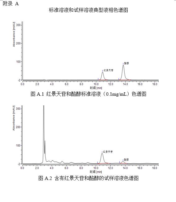 3.3.4 酪醇标准工作液:将酪醇标准储备液(3.3.3)用甲醇(3.1.2)稀释制备一系列标准溶液,标准系列浓度为0.00mg/mL、0.01mg/mL、0.02mg/mL、0.05mg/mL、0.10mg/mL、0.20mg/mL,临用时配制。