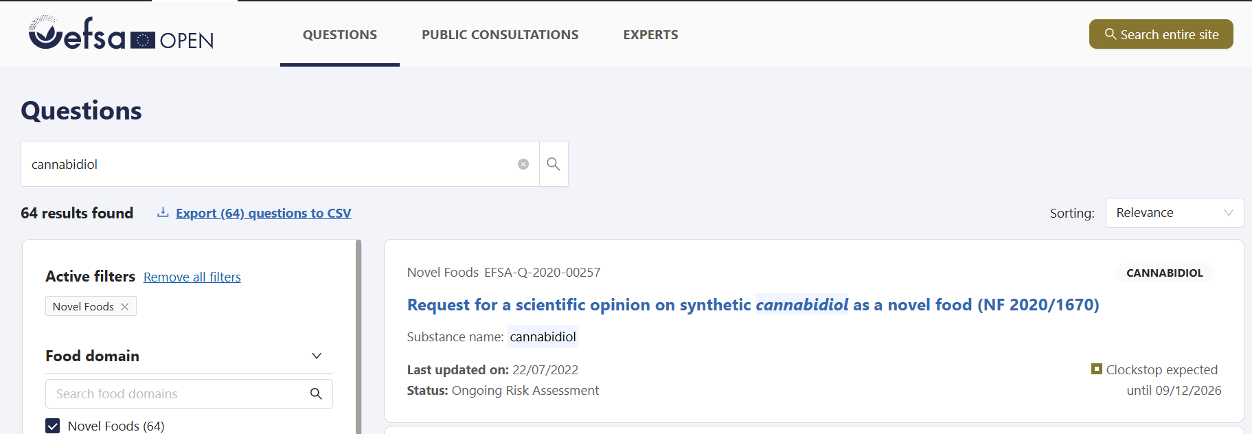 根据欧盟条例(EU)2015/2283,CBD属于一种新型食品,若想要在欧盟的食品和食品补充剂中使用,需要获得欧盟的批准后方可合法上市销售。根据OPEN EFSA的公开信息显示,目前欧盟已收到60余项CBD的新型食品相关申请,但截至目前没有一个申请获得了正式批准,多数申请因为安全性数据不足或判定无效而未通过。