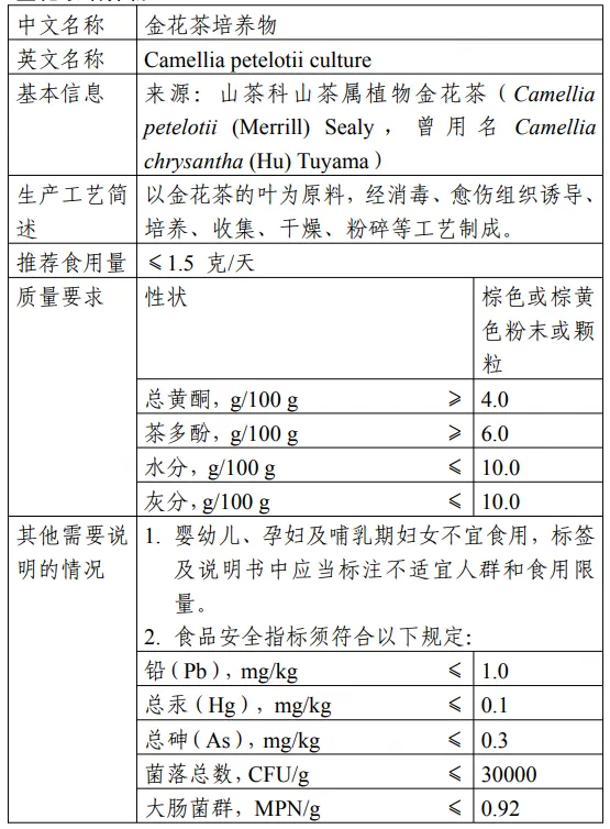 国家卫生健康委食品安全标准与监测评估司于2024年12月13日发布关于金花茶培养物等11种“三新食品”的公告,其中包括1种新食品原料,8种食品添加剂新品种和2种食品相关产品新品种。