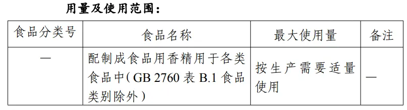 中文名称 | CAS号 | 使用范围 | 最大使用量(%) |