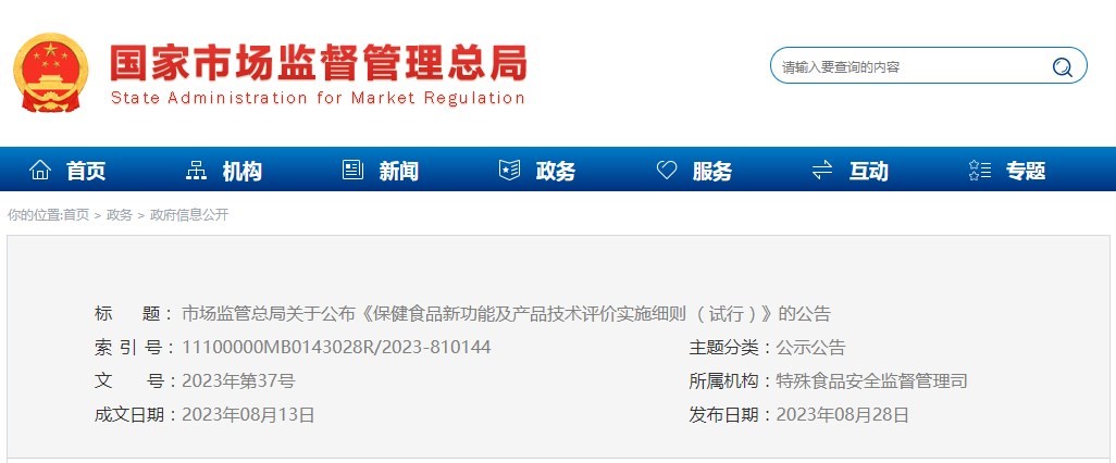 市场监管总局关于公布《保健食品新功能及产品技术评价实施细则 (试行)》的公告