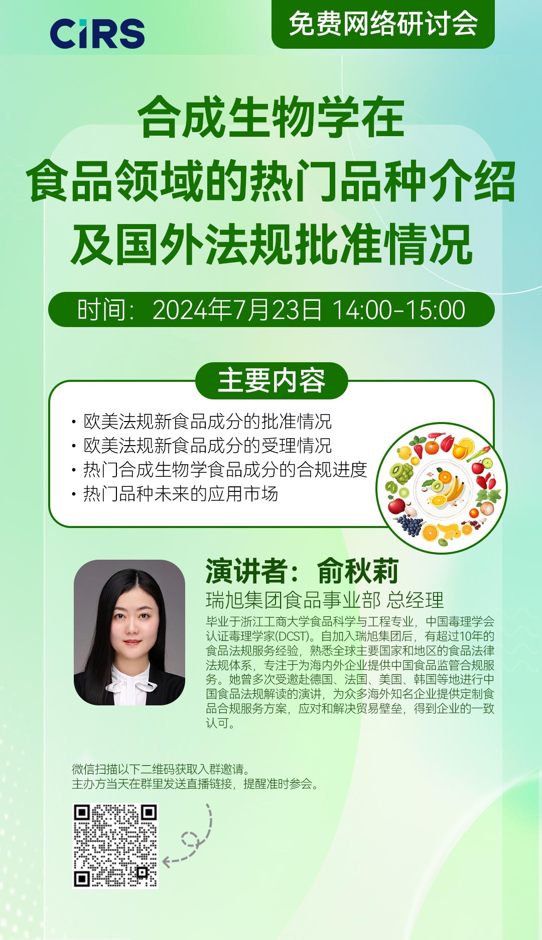 在此背景下,瑞旭集团特推出本次网络研讨会,结合国外法规和批准情况,分享近几年合成生物学在食品领域的热门品种。