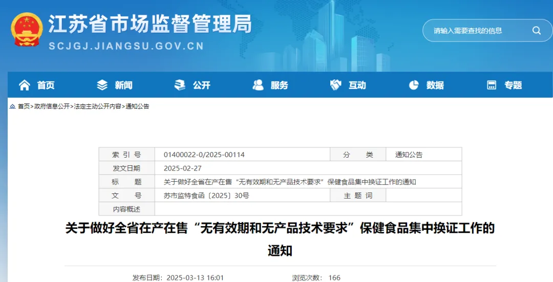 近日,江苏省发布《在产在售“双无”保健食品换证工作方案》,旨在积极稳妥做好在产在售“无有效期和无产品技术要求”(以下简称“双无”)保健食品集中换证工作,确保换证期间市场秩序稳定有序。