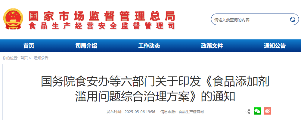 近日,国务院食安办联合工业和信息化部、农业农村部、国家卫生健康委、海关总署、市场监管总局印发《食品添加剂滥用问题综合治理方案》(以下简称《方案》),在全国范围内部署开展食品添加剂滥用问题综合治理行动。