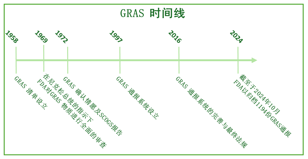 从上图可以看到,从1958年提出GRAS概念来,美国GRAS法规经历了多次重要的变迁,具体如下: