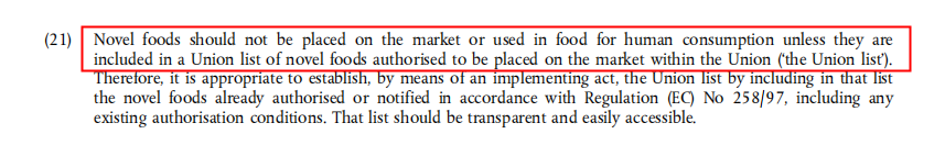 根据欧盟法规(EU) 2015/2283,新型食品(Novel Food)为1997年5月15日(首个Novel Food法规生效)前,在欧盟范围内,尚未广泛食用的食品。
