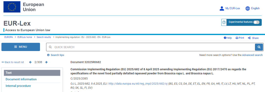 2025年5月23日,欧盟委员会发布法规(EU)2015/2283号条例,批准发酵菜籽粕(fermented rapeseed cake )作为新型食品原料(Novel Food),应用范围由原来的饲料添加剂扩大到食品原料,可用于生产面包、酱类、香肠等。
