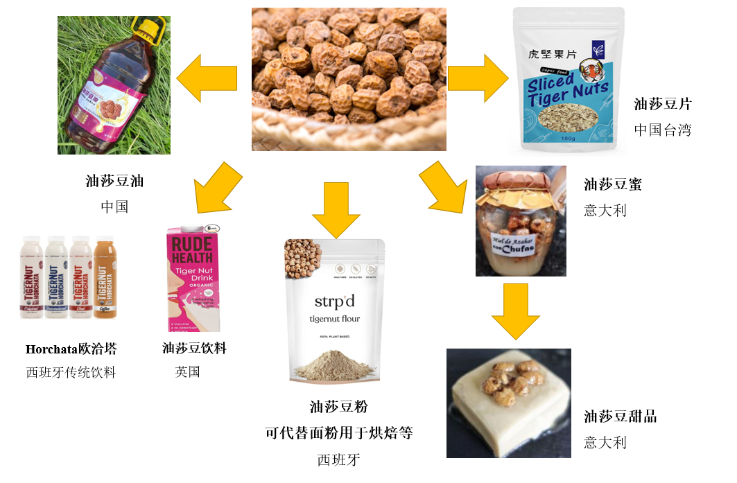 其实,除作油料外,油莎豆还有很多食用方式。国内外已有多家企业生产油莎豆相关产品,由下图可以看出,油莎豆获批后能够辐射到多种终端产品市场,应用前景广泛。