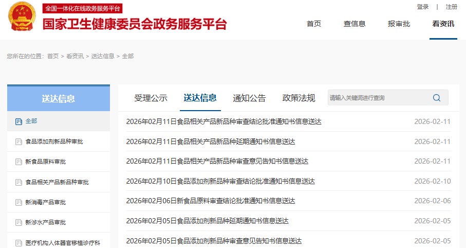 01新食品原料审查结论批准通知书信息送达