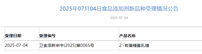 3 | 2025-07-04 | 卫食添新申字(2025)第0065号 | 2'-岩藻糖基乳糖 |