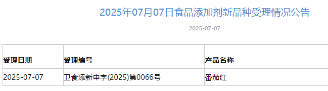 4 | 2025-07-07 | 卫食添新申字(2025)第0066号 | 番茄红 |