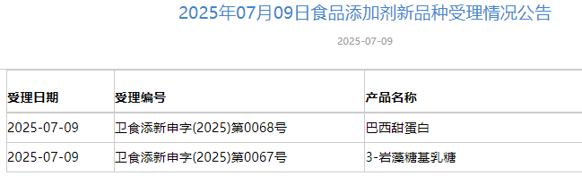 6 | 2025-07-09 | 卫食添新申字(2025)第0068号 | 巴西甜蛋白 |