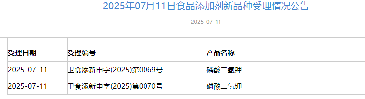 7 | 2025-07-11 | 卫食添新申字(2025)第0069号 | 磷酸二氢钾 |