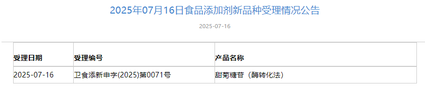 9 | 2025-07-16 | 卫食添新申字(2025)第0071号 | 甜菊糖苷(酶转化法) |