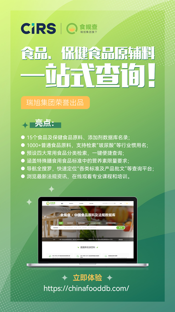 食规查进入端口:食规查 • 中国食品原料及法规数据库