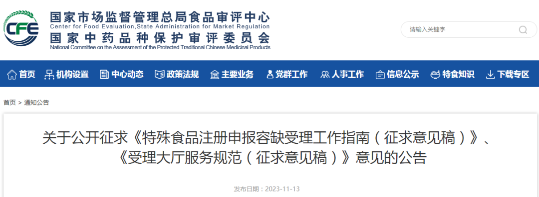 1.《特殊食品注册申报容缺受理工作指南(征求意见稿)》