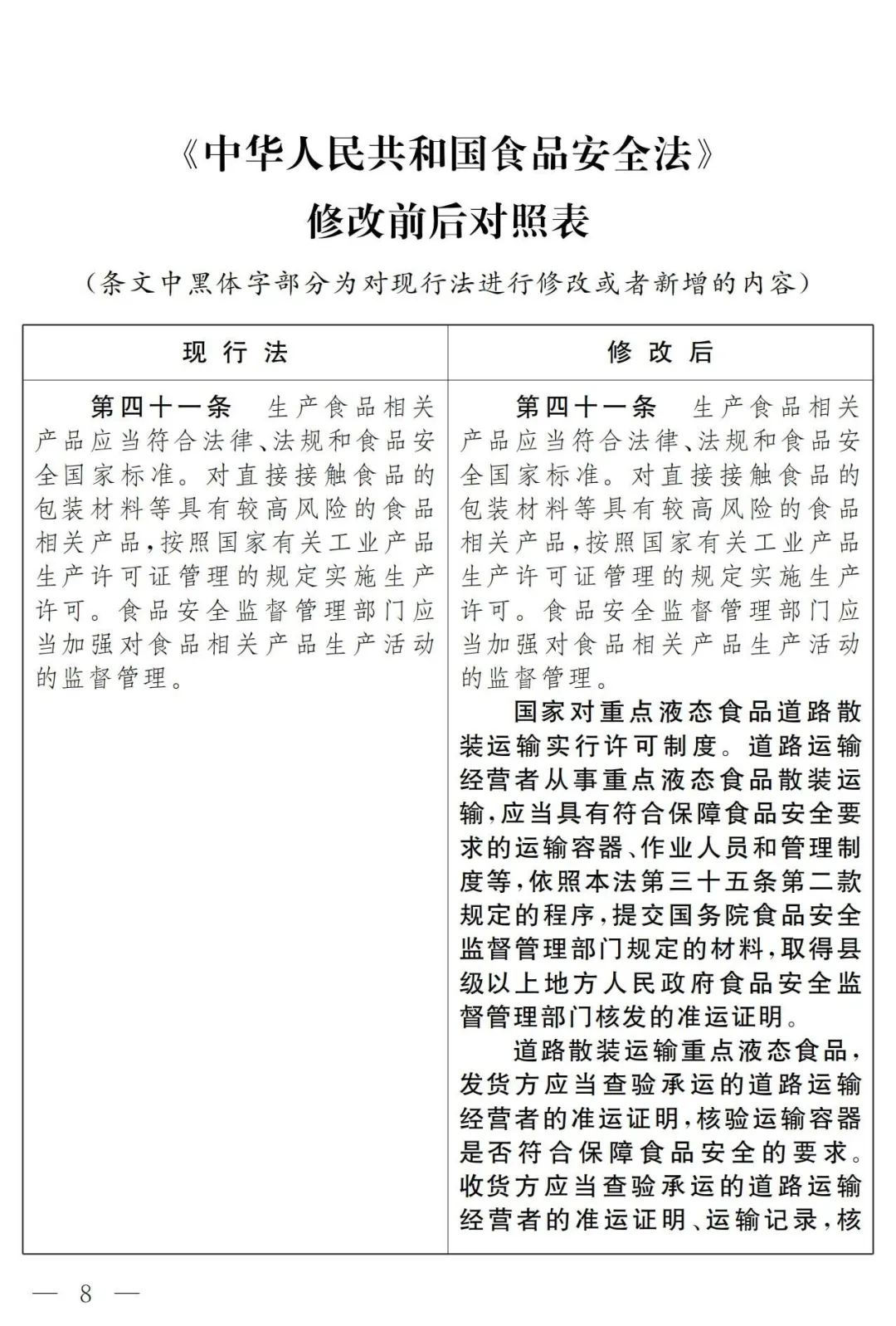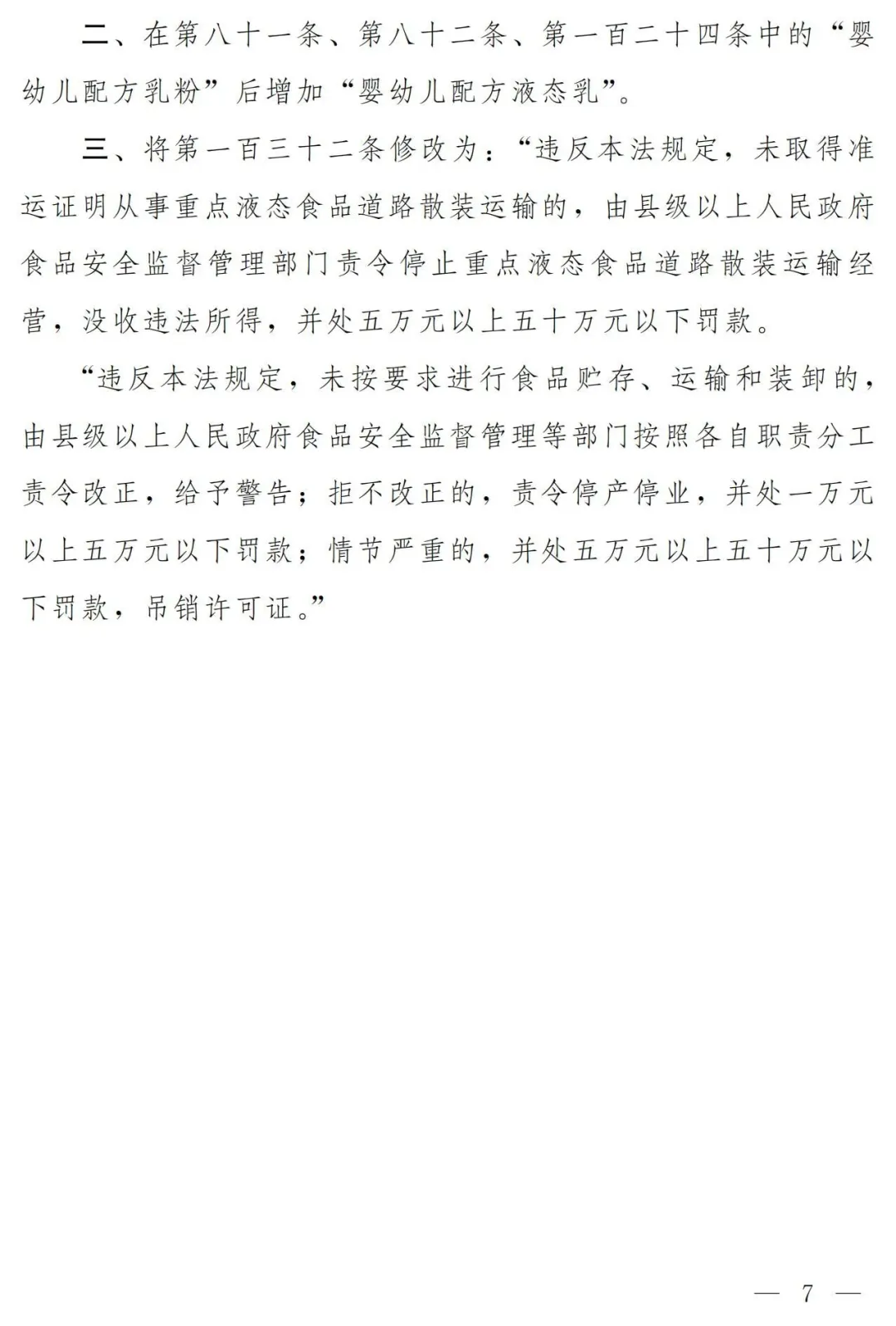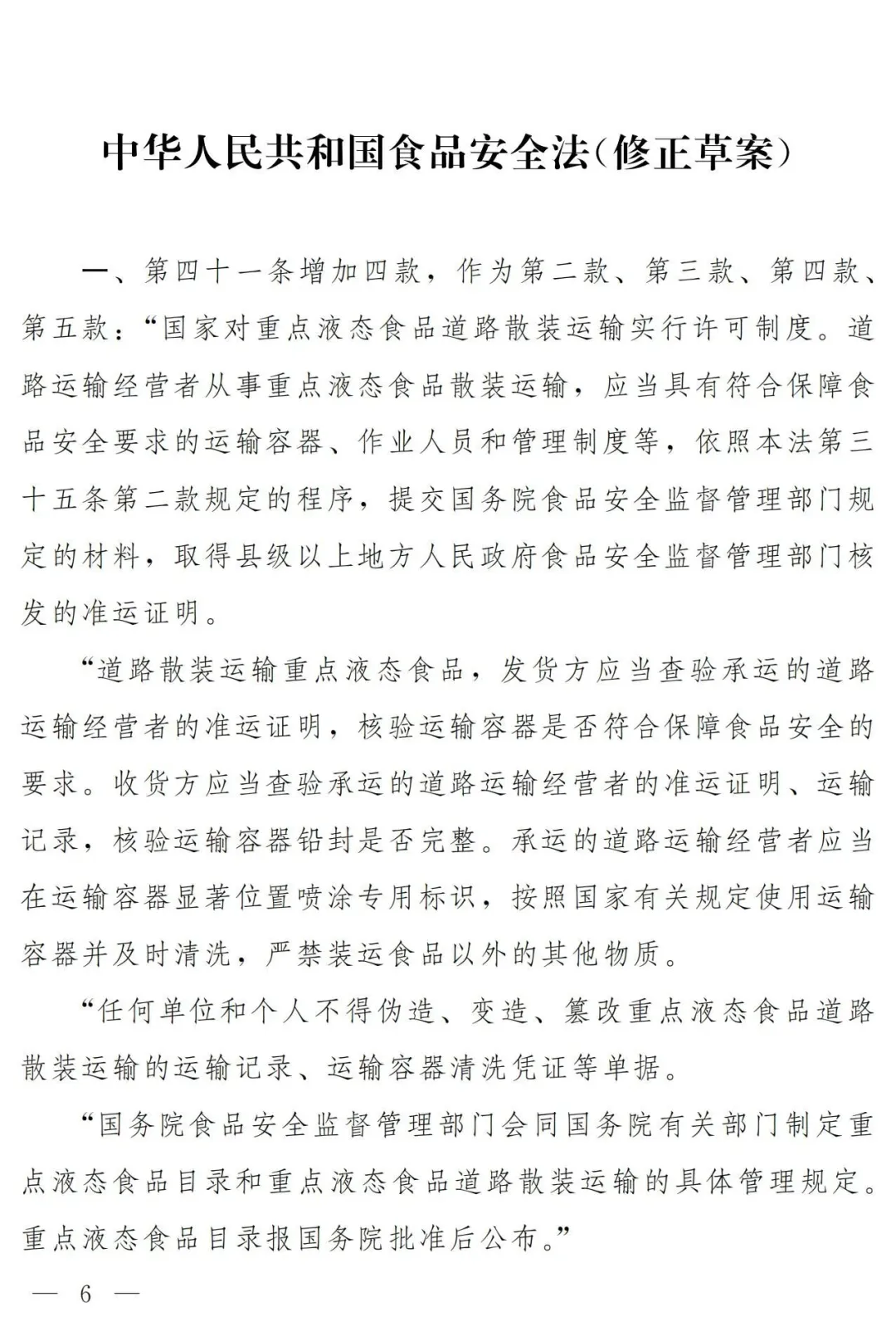 十四届全国人大常委会第十六次会议对《中华人民共和国食品安全法(修正草案)》进行了审议。现将《中华人民共和国食品安全法(修正草案)》公布,社会公众可以直接登录中国人大网(www.npc.gov.cn)或国家法律法规数据库(flk.npc.gov.cn)提出意见,也可以将意见寄送全国人大常委会法制工作委员会(北京市西城区前门西大街1号,邮编:100805。信封上请注明食品安全法修正草案征求意见)。征求意见期限为30日。